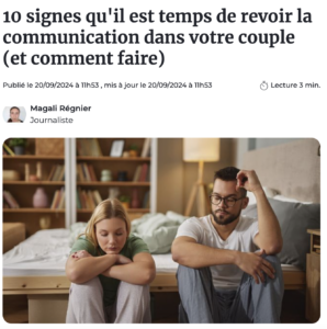 Article paru le 20 septembre 2024 Peut-on vraiment s’aimer sans bien communiquer ? Cela semble difficile tant cette notion est essentielle dans tous les aspects de la vie de couple. Mais parfois, le fil est rompu, vous n’arrivez pas, ou plus, à vous livrer. Pour Pierre Nantas, psychothérapeute spécialiste du couple, voici 10 signes qu’il est temps de revoir la communication dans votre couple assez rapidement.