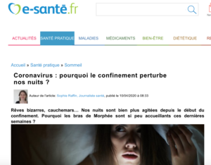 E-SANTE.FR – 10 avril 2020 – Rêves bizarres, cauchemars… Nos nuits sont bien plus agitées depuis le début du confinement. Pourquoi les bras de Morphée sont si peu accueillants ces dernières semaines ?