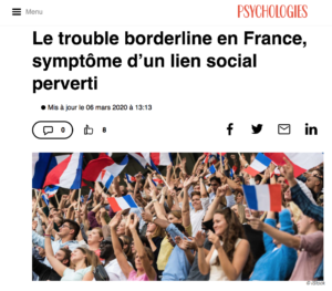 PSYCHOLOGIES – 6 juin 2020 – Le DSM-V, manuel de diagnostic et de statistique des troubles mentaux américain, a répertorié 9 symptômes (dont 5 au moins suffisent) pour diagnostiquer la psychopathologie du trouble de la personnalité borderline. En observant la société française contemporaine d’un point de vue sociologique, on ne peut s’empêcher de constater qu’elle présente, elle aussi, un grand nombre de similitudes avec ces mêmes symptômes.