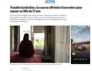 Article paru le 22 mai 2023 On ne naît pas borderline mais on peut en mourir. Depuis des semaines, Virginie se démène pour que sa fille, qui veut attenter à sa vie, soit gardée dans une structure hospitalière compétente, et qu’elle y soit soignée. Face à elle, l’hôpital estime ne pas devoir garder l’adolescente.
